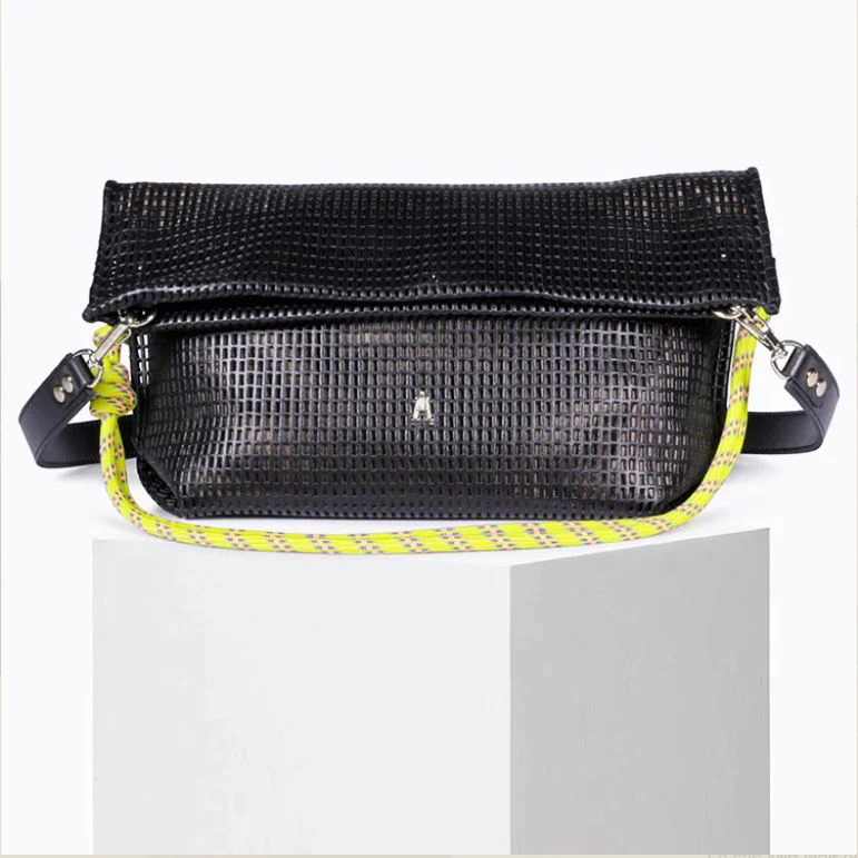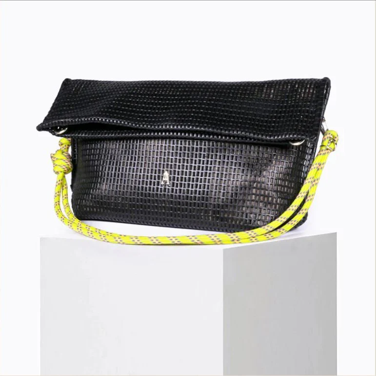 Il est livré avec deux bandoulières : une en corde d’escalade Square Citron réglable pour un look mode, et une bandoulière en cuir de 80 cm pour un style plus classique. Le sac se ferme avec un aimant, assurant une fermeture facile et sécurisée.