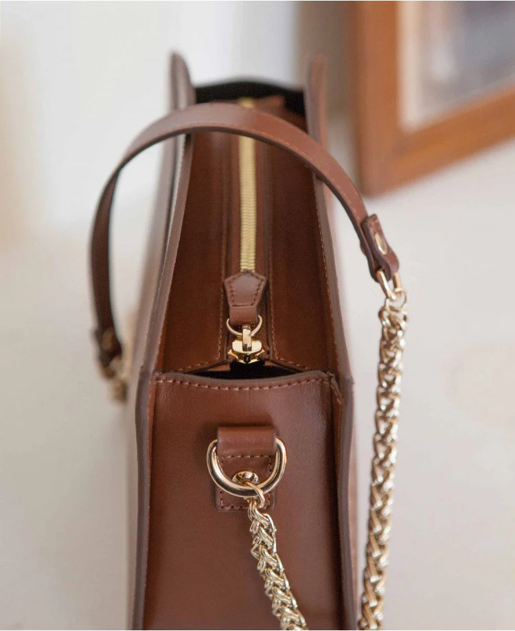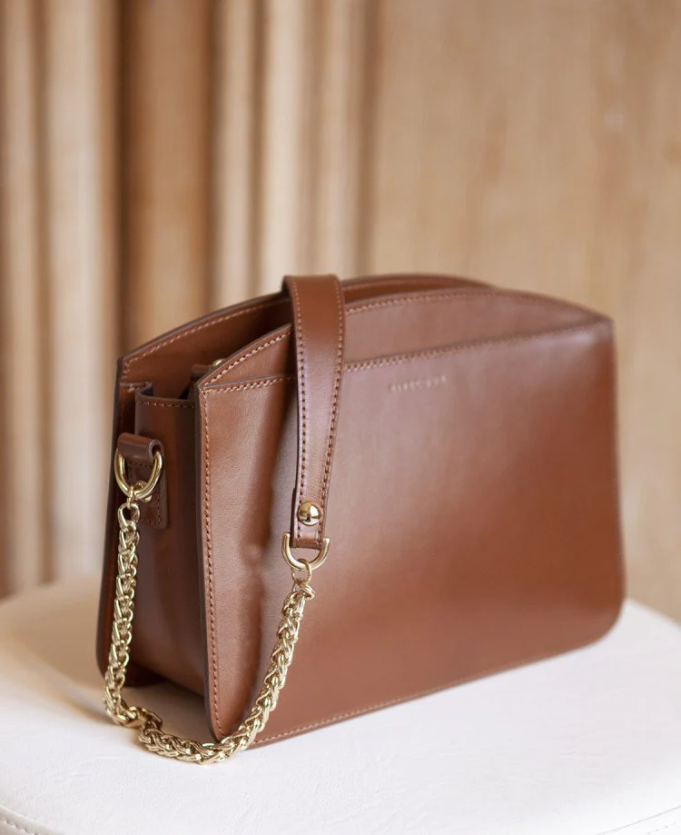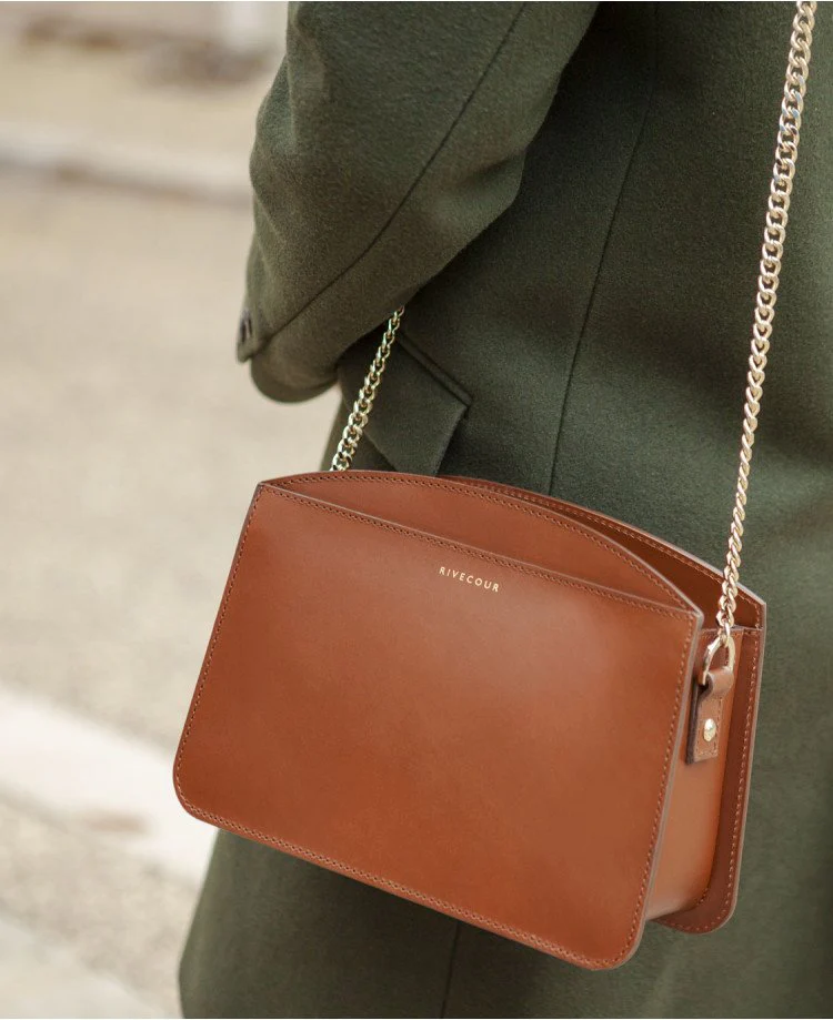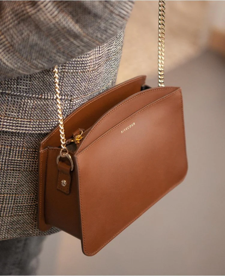Sa bandoulière chaînette dorée (113 cm) lui apporte toute son élégance et le rend confortable à porter. Sa couleur en fait un basique adapté à toutes les tenues. Sac en cuir, tannage végétal (patine naturelle à prévoir)