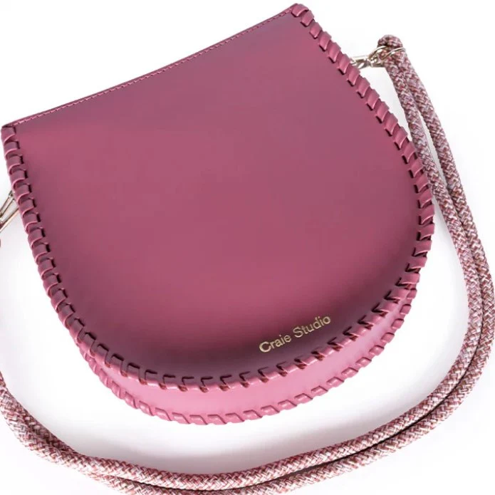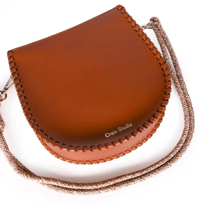 Sa forme arrondie est sublimée par une couture réalisée à la main, à l’aide d’un lien de cuir ton sur ton, qui dessine élégamment sa courbe et lui confère un caractère affirmé.