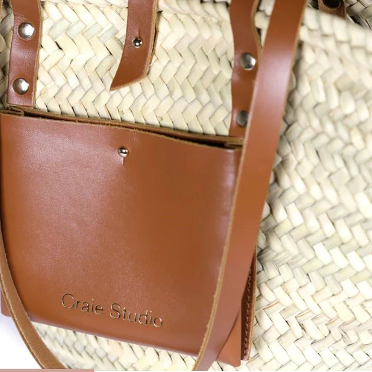 Le Panier Tan, l’intemporel sac d’été en doum et cuir de vachette camel, revisité par Craie pour un look intemporel, bohème et chic.