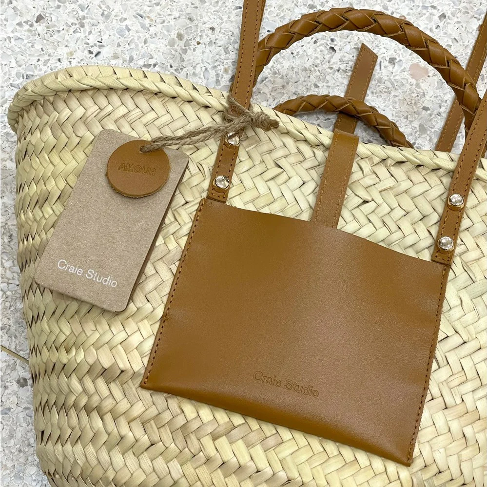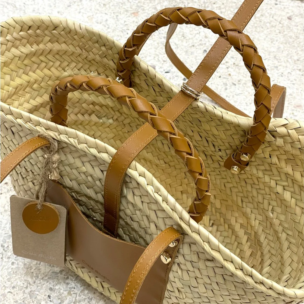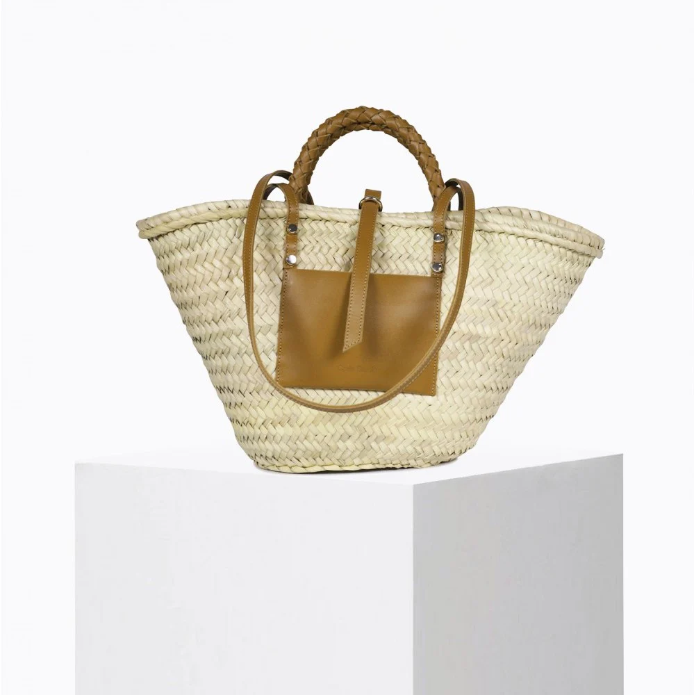 Panier Praia couleur camel, contemporain et chic, il sera à votre bras ou épaule tout l’été, tellement pratique vous pourrez y mettre aussi bien vos courses du marché que vos affaires de plage ou tout simplement l’emmener avec vous partout où vous irez !