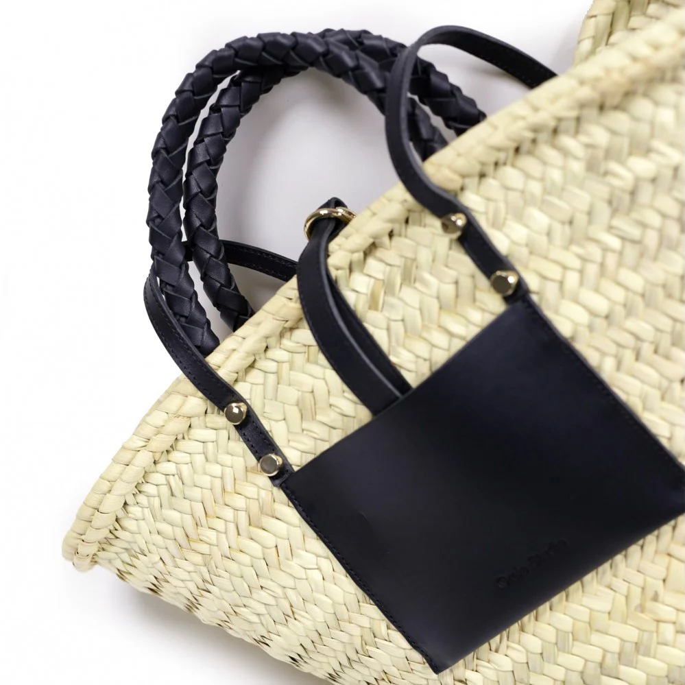Panier Praia noir, contemporain et chic, il sera à votre bras ou épaule tout l’été, tellement pratique vous pourrez y mettre aussi bien vos courses du marché que vos affaires de plage ou tout simplement l’emmener avec vous partout où vous irez !