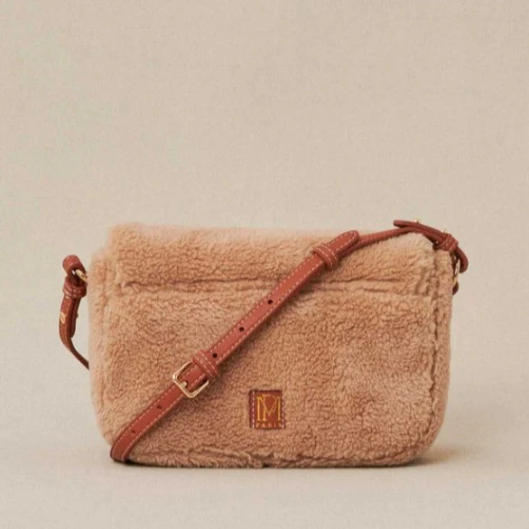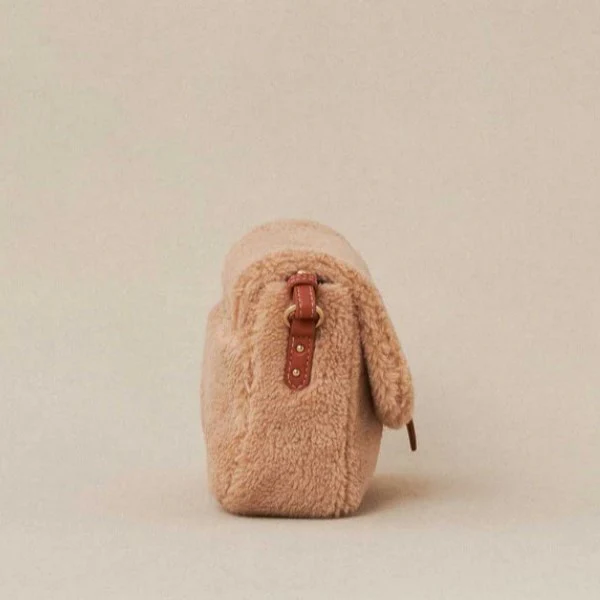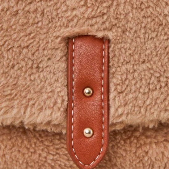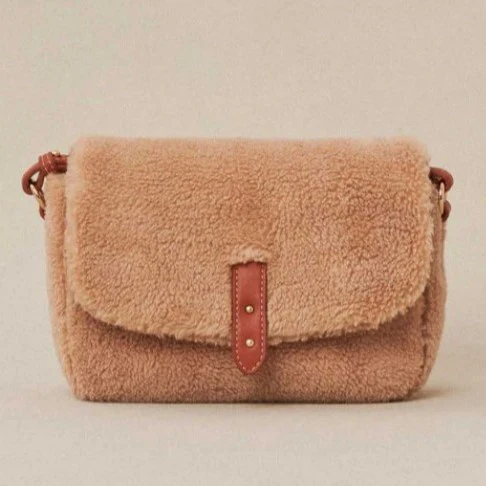 Sac à main rectangulaire en cuir en fausse fourrure camel