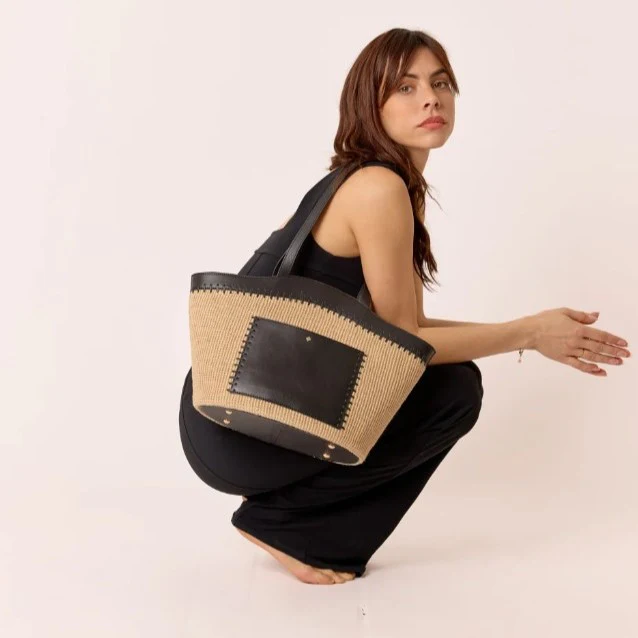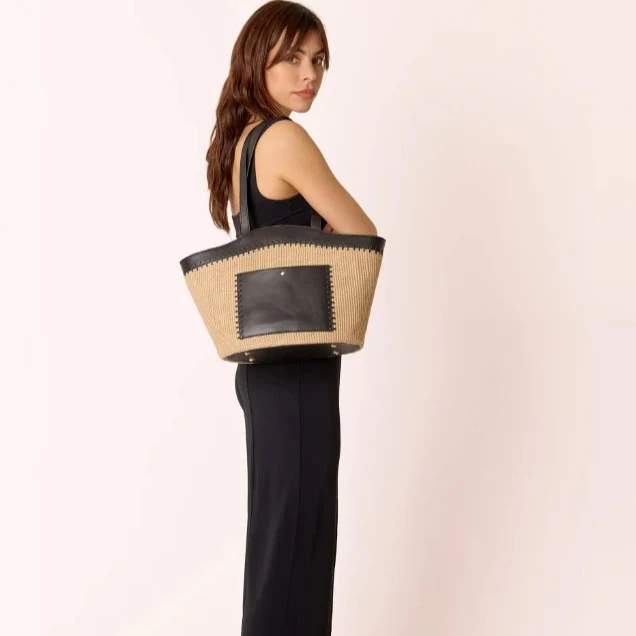 Le sac cabas bi-matière, en jute tressé et en cuir est le coup de coeur de la marque.