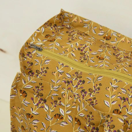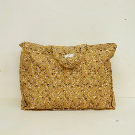 On adore particulièrement sa grande taille (dimensions : 50x40x20 cm, anses : 40cm) et son imprimé Bohème Ocre 100% coton.