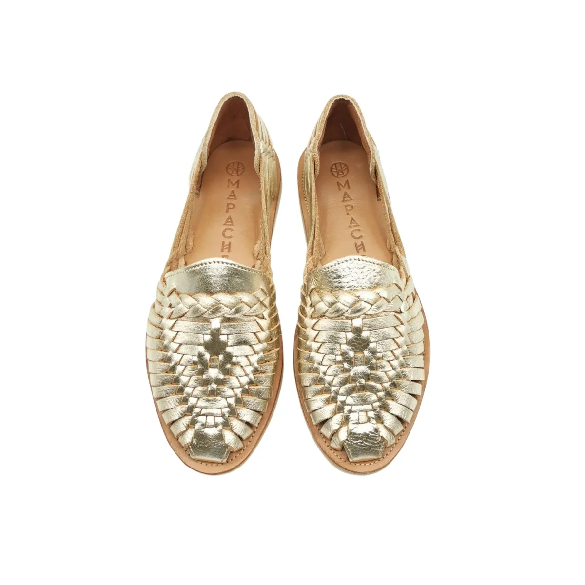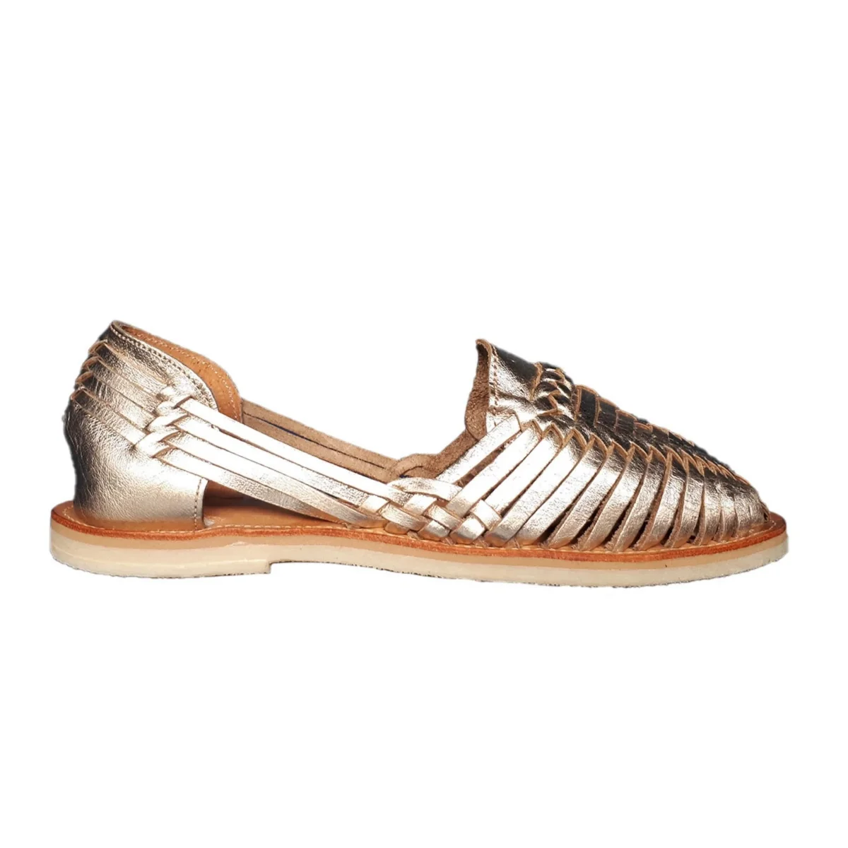 La sandale Alegre est le modèle iconique de Mapache. Confectionnée à la main par des artisans mexicains, elle est le fruit d’un savoir-faire ancestral. Sa version champagne apporte luminosité et pep’s à vos tenues d’été.