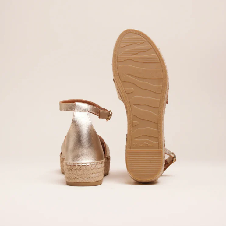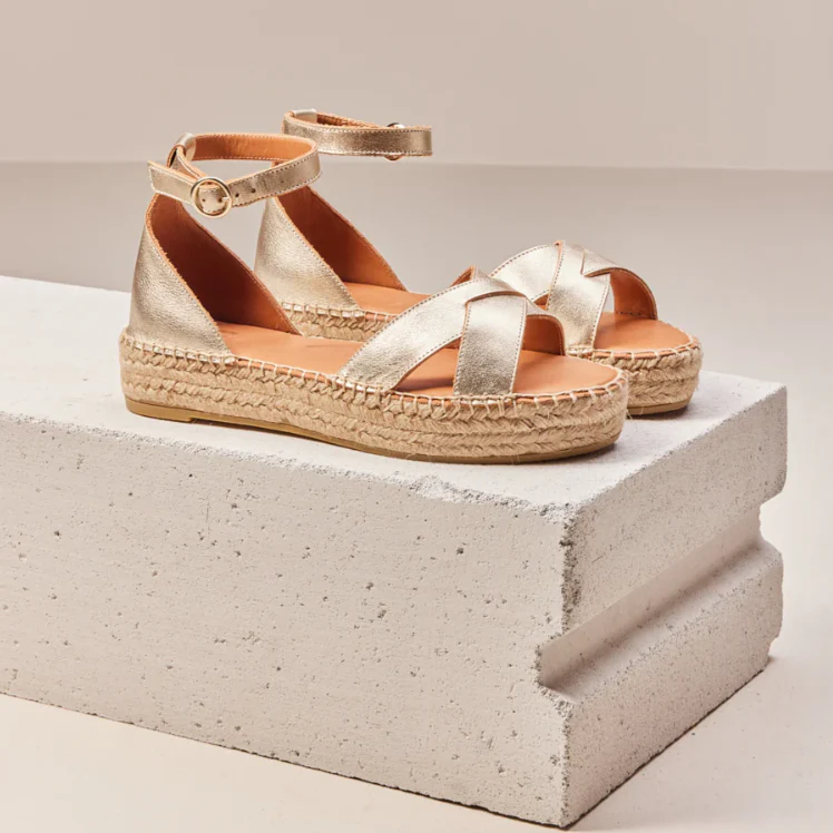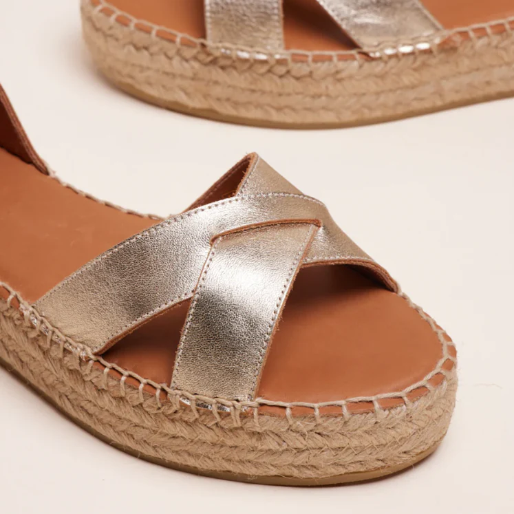 Sandales type espadrille en cuir grainé champagne. Une fine bride de cuir pour maintenir la cheville et une semelle intérieure en cuir moelleuse et tellement confortable. Son esprit frais et bohème fait de cette espadrille à la semelle en corde un modèle d’authenticité dont vous n’allez plus pouvoir vous passer.