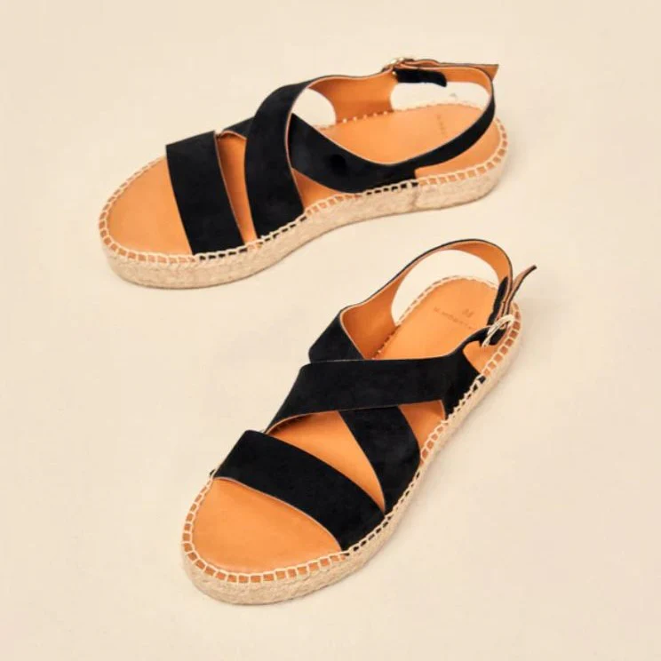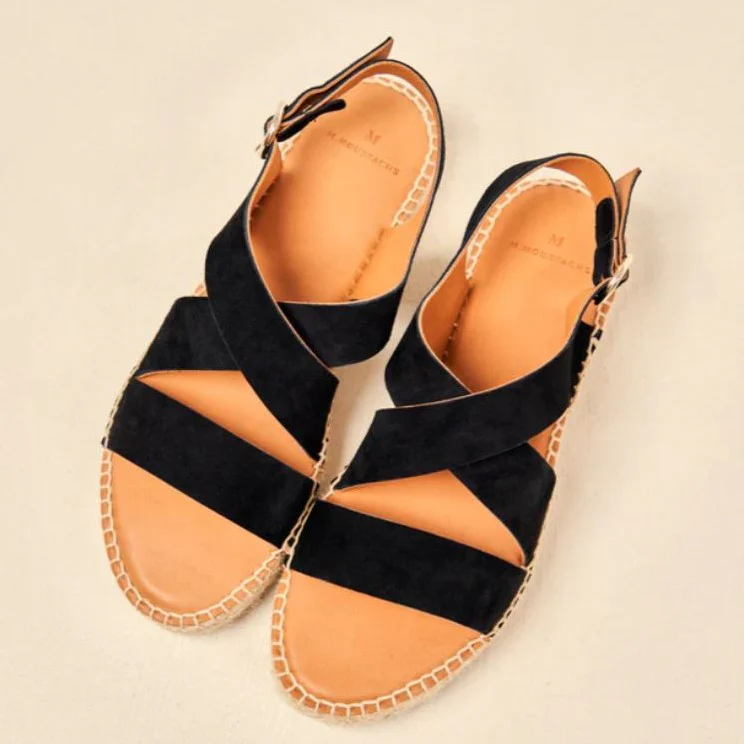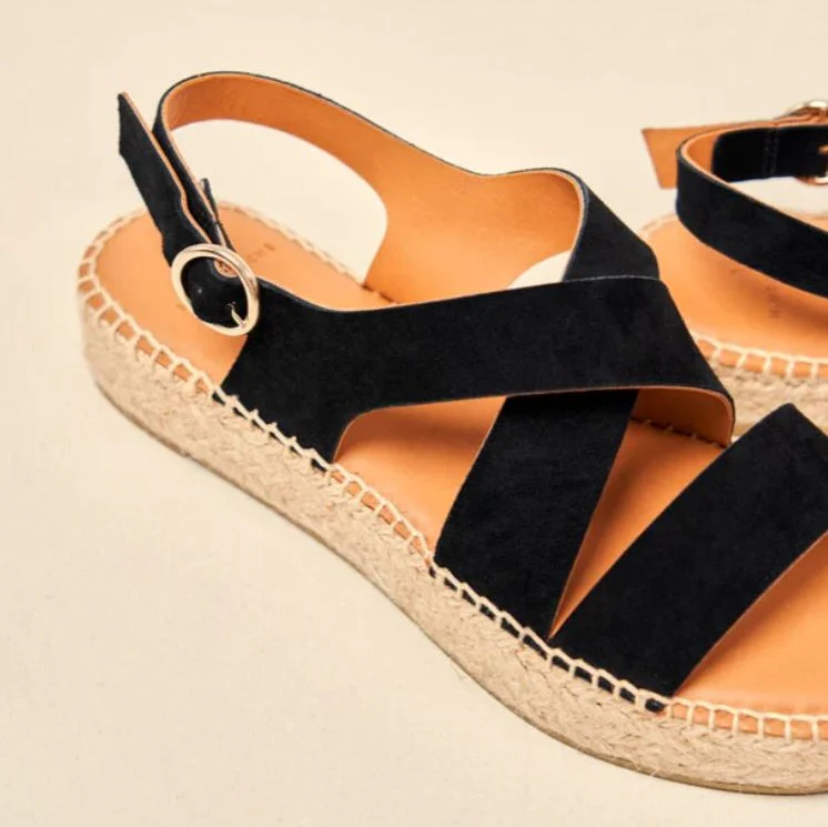 Composition : Tige en suède de vachette, semelle extérieure en corde et gomme, semelle intérieure en cuir, doublure en cuir de veau
