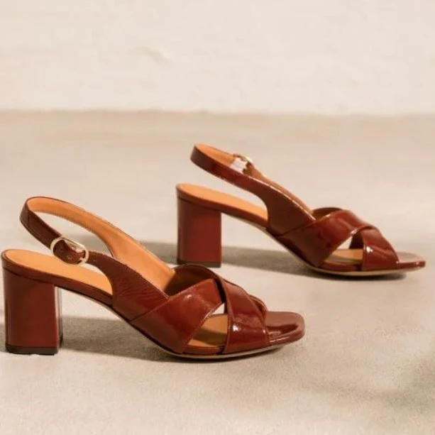 Sandales à petits talons en suède, avec brides croisées sur le devant, d’un talon bloc de 6 cm et une bride arrière pour une entière stabilité.