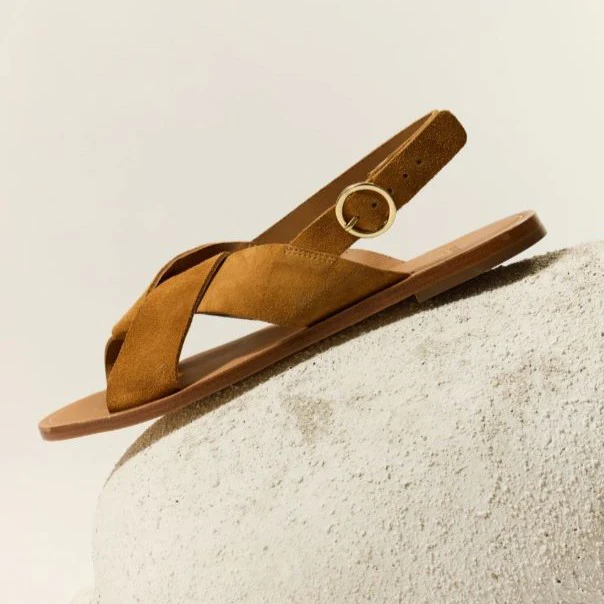 Sous le soleil d’un après-midi d’été, la sandale en cuir à la fine semelle glisse avec élégance sur les pavés chauds. Son cuir souple, patiné par le temps, épouse le pied avec une discrétion raffinée. Elle ne cherche pas à impressionner, seulement à accompagner, légère et silencieuse. Chaque pas devient une caresse au sol, un souffle de liberté.