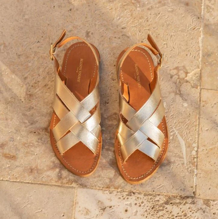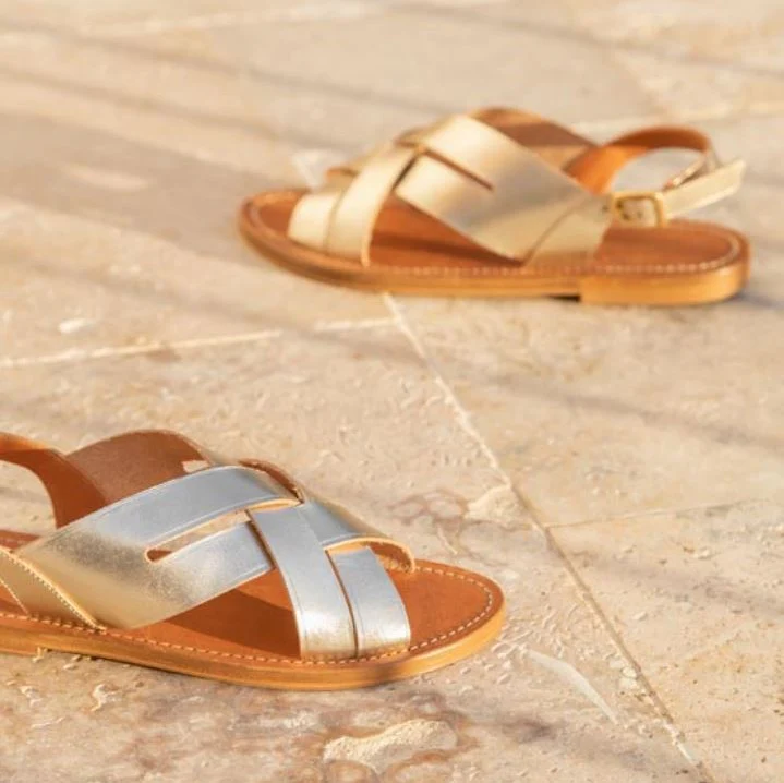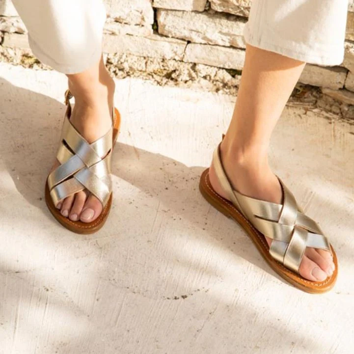 Sandale plate couleur platine, elle vous accompagnera tout au long de la saison.