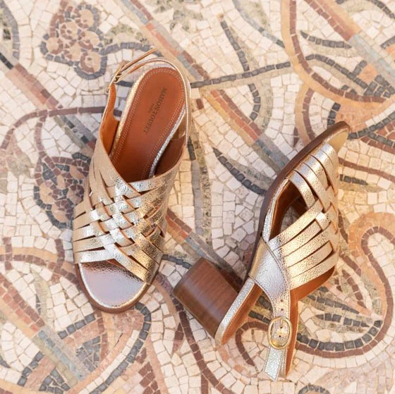 Sandales plates platines, cette jolie paire donnera de l’allure à votre garde robe. Grâce à son talon épais et sa bride à l’arrière, la sandale vous garantie confort et maintient tout au long de la journée.
