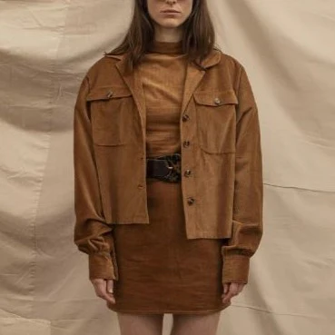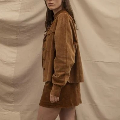 Sur chemise oversize en velours côtelé fluide. Parfait pour un style moderne, des manches longues, un décolleté féminin, des poches poitrine avec rabats et des boutons marbrés. Les poignets à boutons ajoutent une touche élégante.