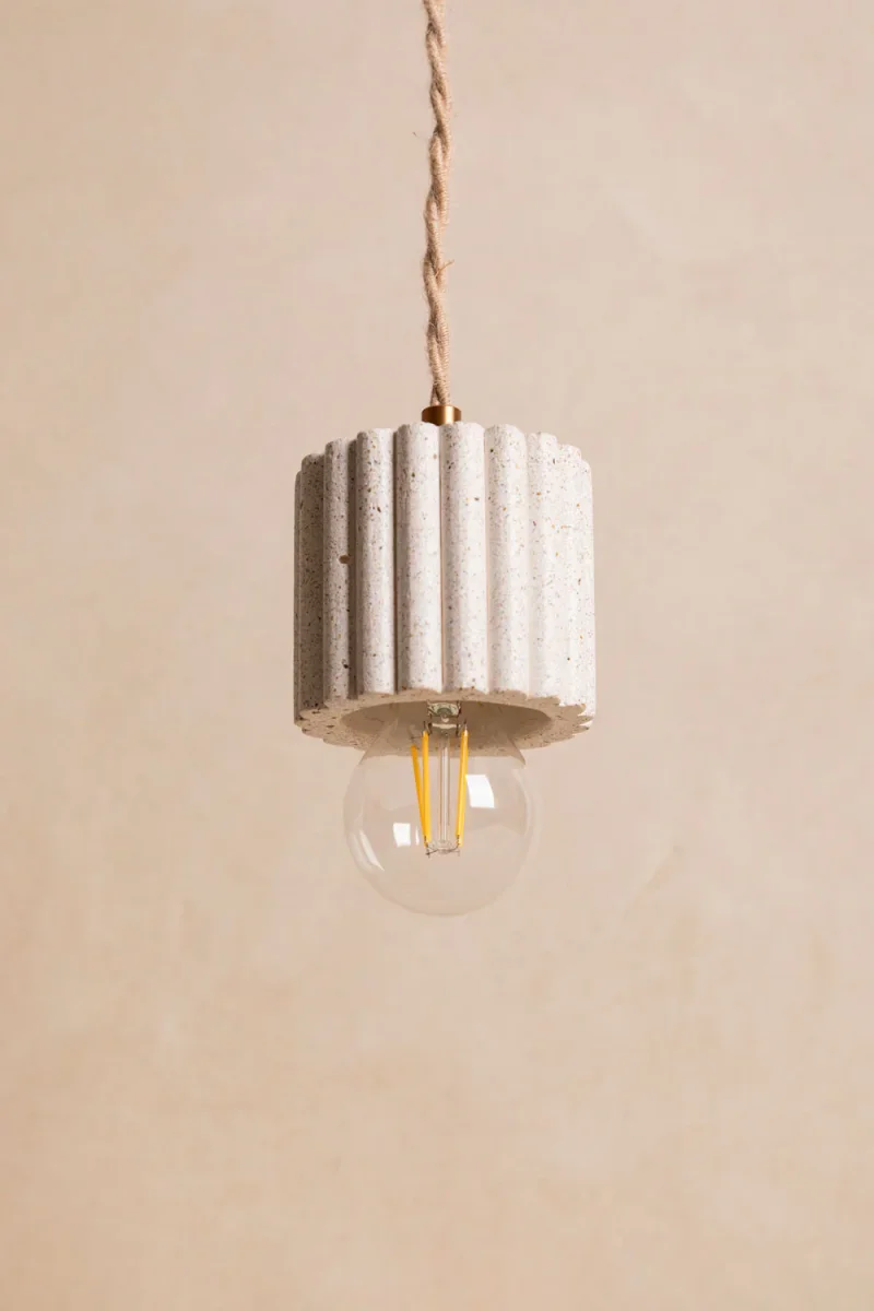 La suspension CHIARA séduit par son design élancé et ses fines cannelures qui apportent rythme et élégance à l’espace. Réalisée en béton teinté dans la masse, elle révèle une matière minérale authentique et contemporaine.