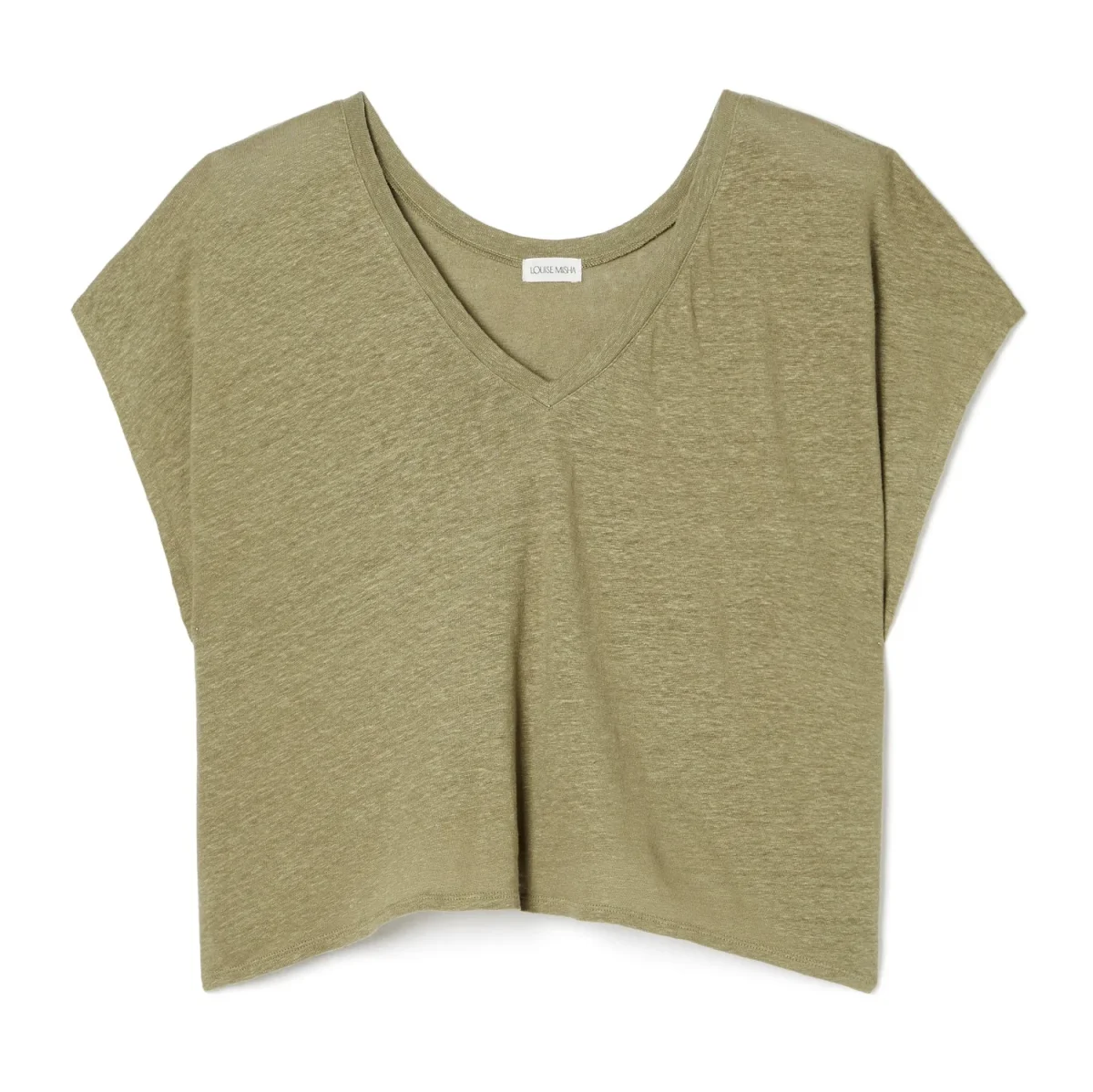 Top à manches courtes réversible en lin, léger et ample, un basic uni indispensable pour une journée d’été.