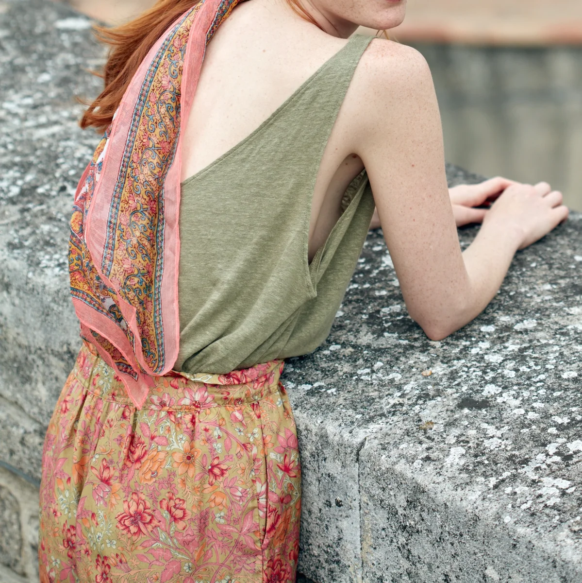 Top oversize sans manche en lin, ample et fluide, sa matière légère est agréable à porter, c’est le top idéal pour l’été !