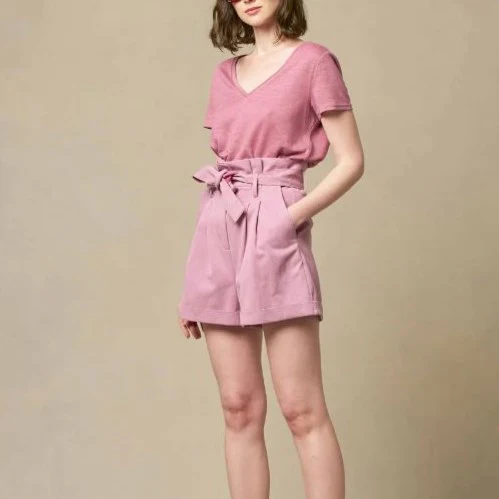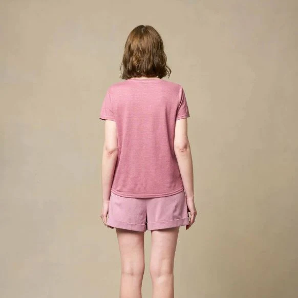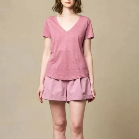 Tee-shirt manches courtes, coupe droite, encolure en V et bas liquette. Très agréable et léger pour l’été !