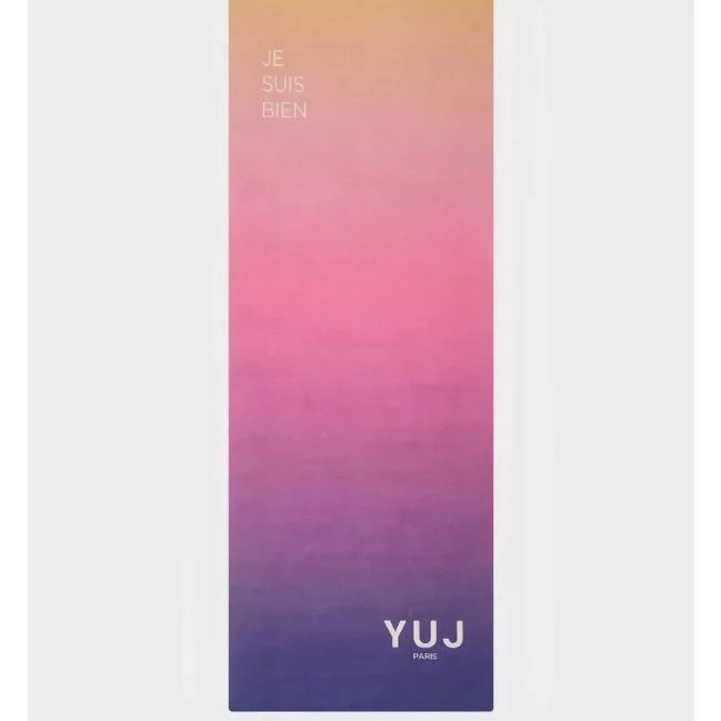 Tapis de yoga dégradé de couleurs rose, violet, jaune, revêtement antidérapant en microfibre. Adapté à tous les styles de yoga pour concilier confort et stabilité. Fourni avec sa sangle imprimée pour un transport facile. Pratique pour voyager, il se plie et se roule pour être glissé dans un tote bag ou une valise
