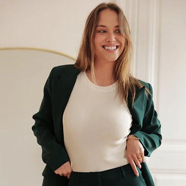 Un top intemporel à avoir dans votre dressing. 50% Coton 50% Viscose Les matières viennent de France et Europe, certifiées OEKO-TEX. Longueur dos T.S : 56cm