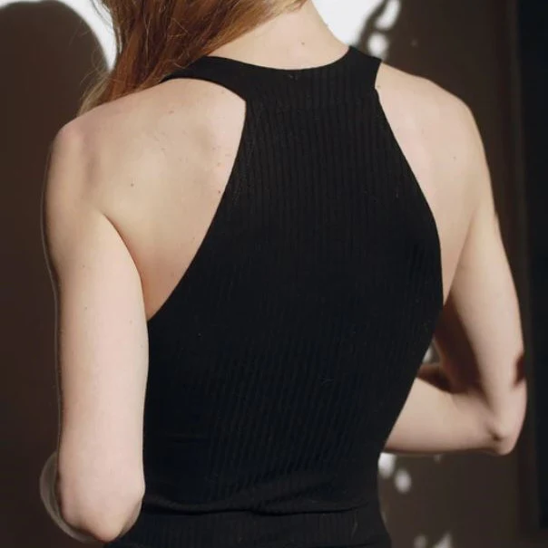 Body débardeur noir à col ras du cou en coton côtelé GOTS, parfait pour l’été!
