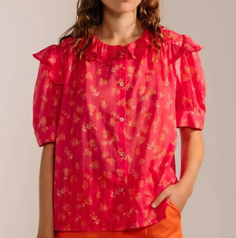 Petit top a manches courtes avec une coupe droite et un boutonnage sur toute la longueur, une couleur pep’s pour cet été !