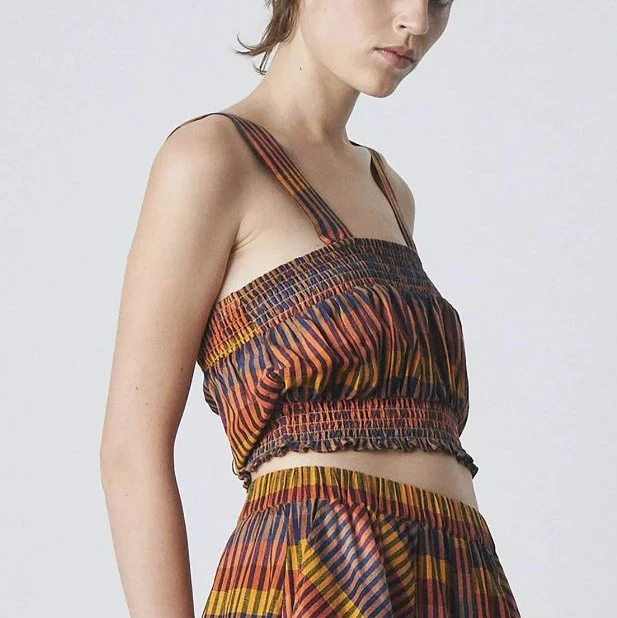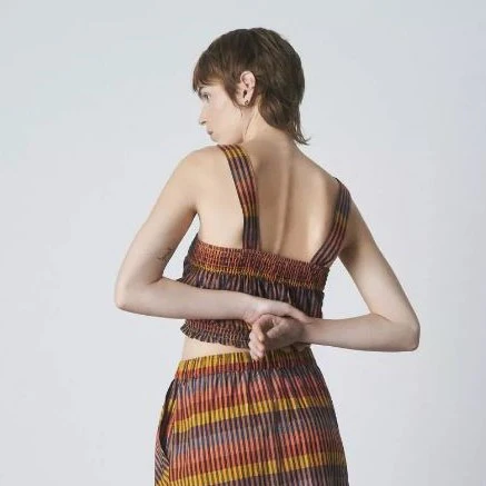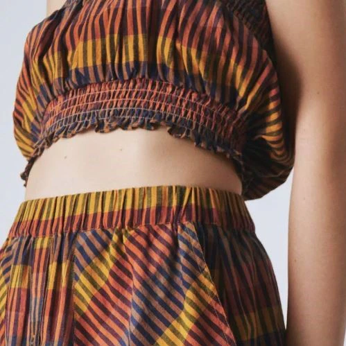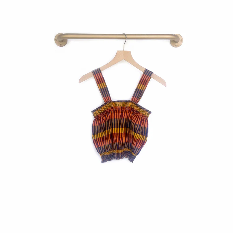 Crop top en toile de coton très légère. Il est élastiqué pour donner un effet bouffant au niveau de la poitrine. 100% coton Lavage à 30°