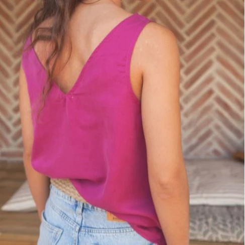 Top en soie, fluide et féminin, à porter en été est de retour. On aime ce rose berry si lumineux et joyeux et qui s’associe avec tout. Avec son joli decolleté en V devant et dans le dos, c’est un must-have qui nous sublime en un clin d’oeil !