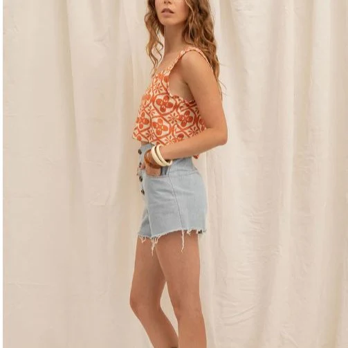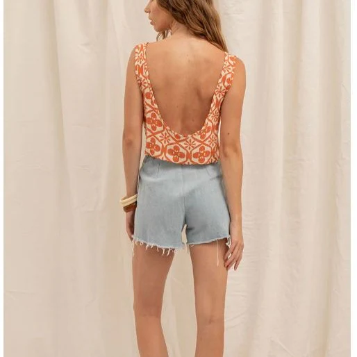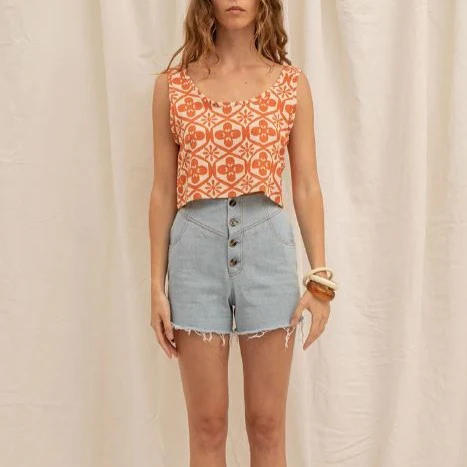 Top court dos nu fluide à fleurs. Un incontournable à porter en toute occasion. Nous aimons le combiner avec un short ou en total look avec un pantalon. Ce top court dos nu présente des finitions biais et un dos arrondi pour une allure élégante.