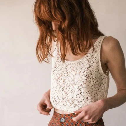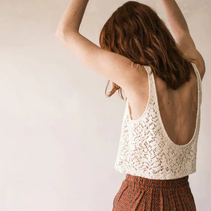 Le Top Lina, c’est la pièce estivale par excellence, celle qu’on glisse avec plaisir dans sa valise dès que le soleil pointe le bout de son nez. Avec sa coupe courte, son dos nu plongeant et son décolleté arrondi, il mise sur la légèreté et la transparence, tout en cultivant un charme bohème et naturel.