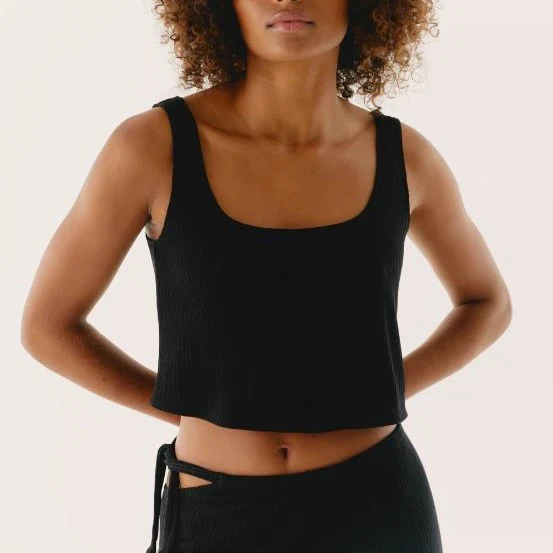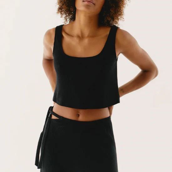 Top droit et court homewear aussi cool que comfy. On aime sa maille douce, à rayures texturées. A faire matcher avec notre pantalon Night Lines