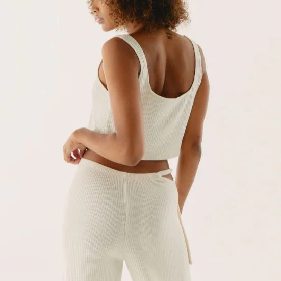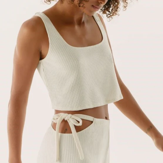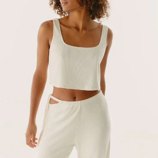 Top droit et court homewear aussi cool que comfy. On aime sa maille douce, à rayures texturées. A faire matcher avec notre pantalon Night Lines
