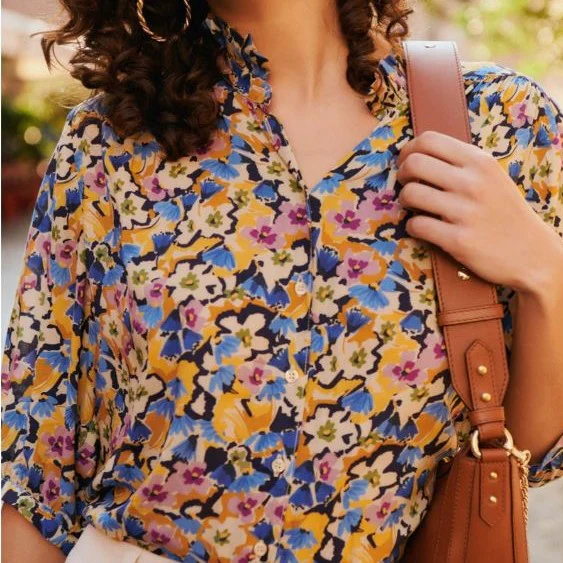 Légère et aérienne, cette blouse à imprimé fleuri coloré apporte une touche de fraîcheur et de féminité à votre tenue. Son col montant froncé lui confère une élégance subtile, tandis que ses manches 3/4 légèrement bouffantes ajoutent du volume tout en douceur. Sa coupe droite et ample assure confort et liberté de mouvement, et son ouverture boutonnée apporte une finition délicate.