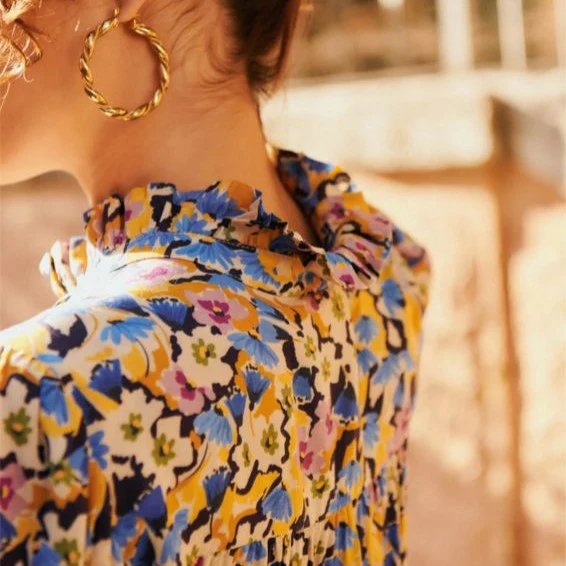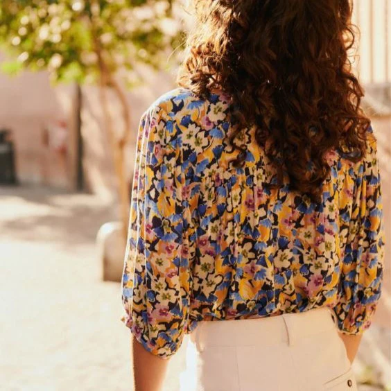 Avec ses motifs floraux aux teintes fondues, cette pièce réinvente l’imprimé fleuri dans un esprit moderne et raffiné. Idéale pour un look élégant et décontracté, elle se porte aisément au quotidien, insufflant une touche de poésie à votre style.