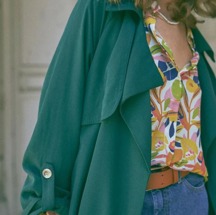 La légèreté de sa matière et sa fluidité rend ce trench indispensable pour vos journées d’automne. Il protège de l’air frais sans avoir trop chaud, il est idéal pour la saison à venir.