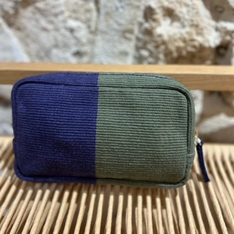 Cette trousse de toilette à bandes colorées est fabriqué en Inde. Elle est idéale pour vous accompagner tout autour du monde.