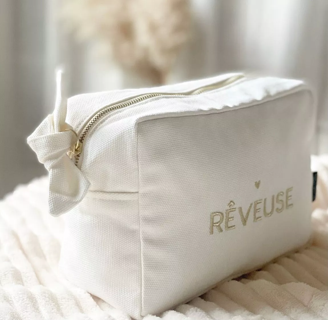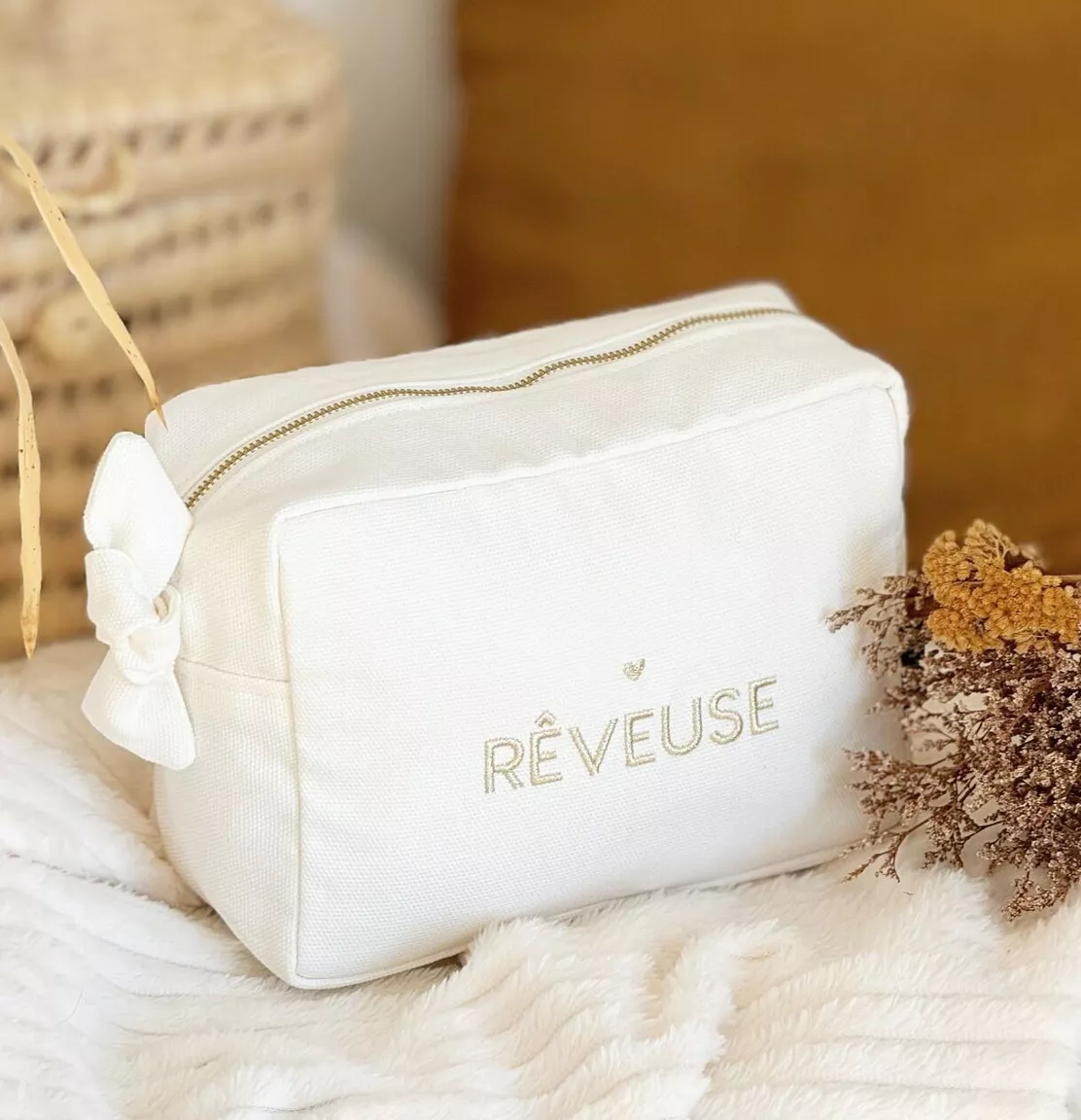 Couleur milk, brodée avec le joli message « Rêveuse » pour y glisser vos essentiels.
