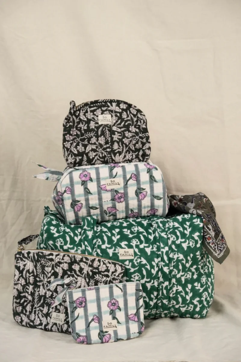 La trousse make-up indispensable ! Pratique et élégante, elle accueille tous vos essentiels beauté. Confectionnée artisanalement à Jaipur, en Inde, selon la technique traditionnelle du block print, chaque trousse est unique.