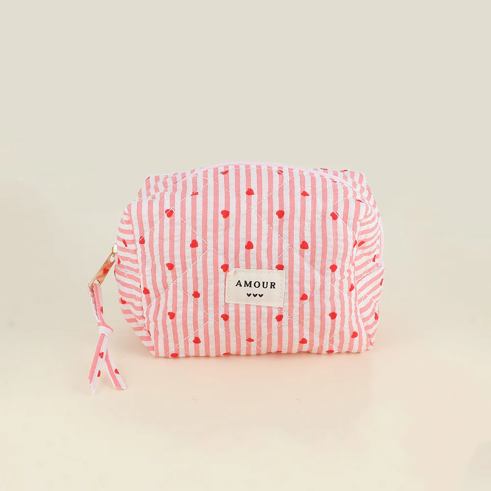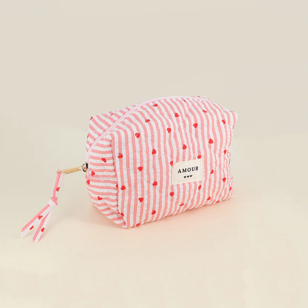 Trousse en polyester multi-usages, pratique pour y ranger tout type d’affaires (toilettes, maquillage etc.).Trousse côtelée avec de jolis motifs. Dimensions : 15 x 10 x 8 cmMatière : 100% PolyesterDoublure : 100% PolyesterComposition : 1 fermeture éclair en laiton doré
