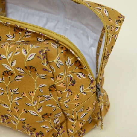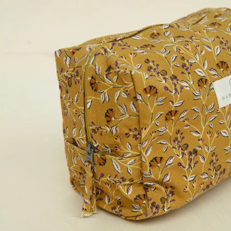 Cette trousse de toilette en coton avec imprimé tendance Bohème Ocre vous permettra d’emporter tous vos essentiels lors de vos escapades!