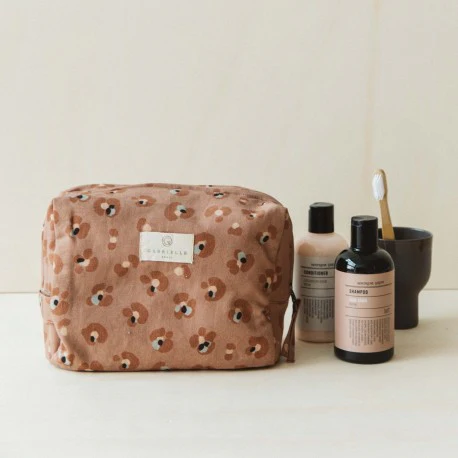 L’atout ultime pour partir en week-end ! Pratique et chic, cette trousse de toilette en coton avec imprimé Léo Sienne vous permettra d’emporter tous vos essentiels.
