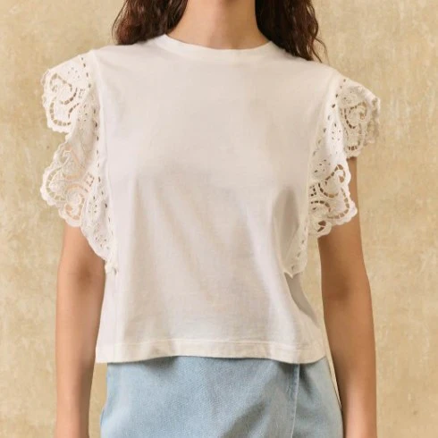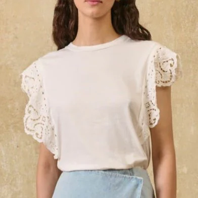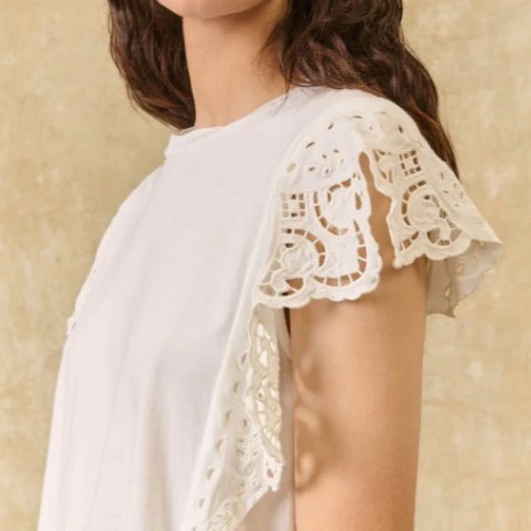 Un basique revisité avec délicatesse : le t-shirt Quinova Off-White incarne l’élégance bohème signature de Louise Misha. Sa teinte écrue lumineuse et ses broderies ajourées aux manches apportent une touche romantique subtile, parfaite pour twister un look casual.