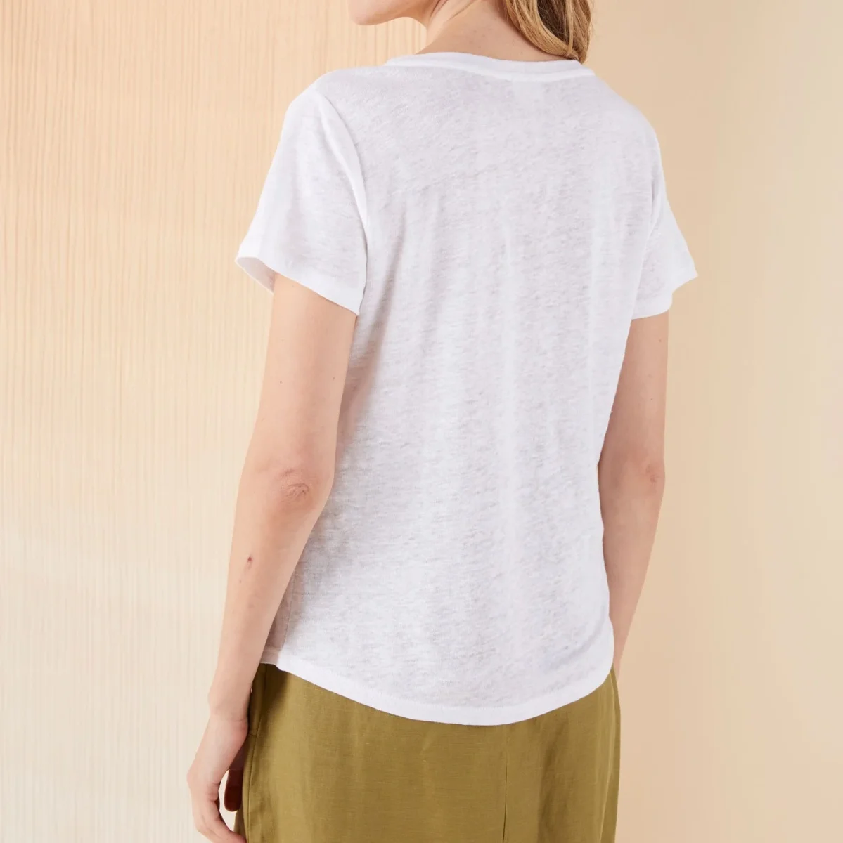 T-shirt écru 100% lin, col V, il est un basique à transporter tout l’été.