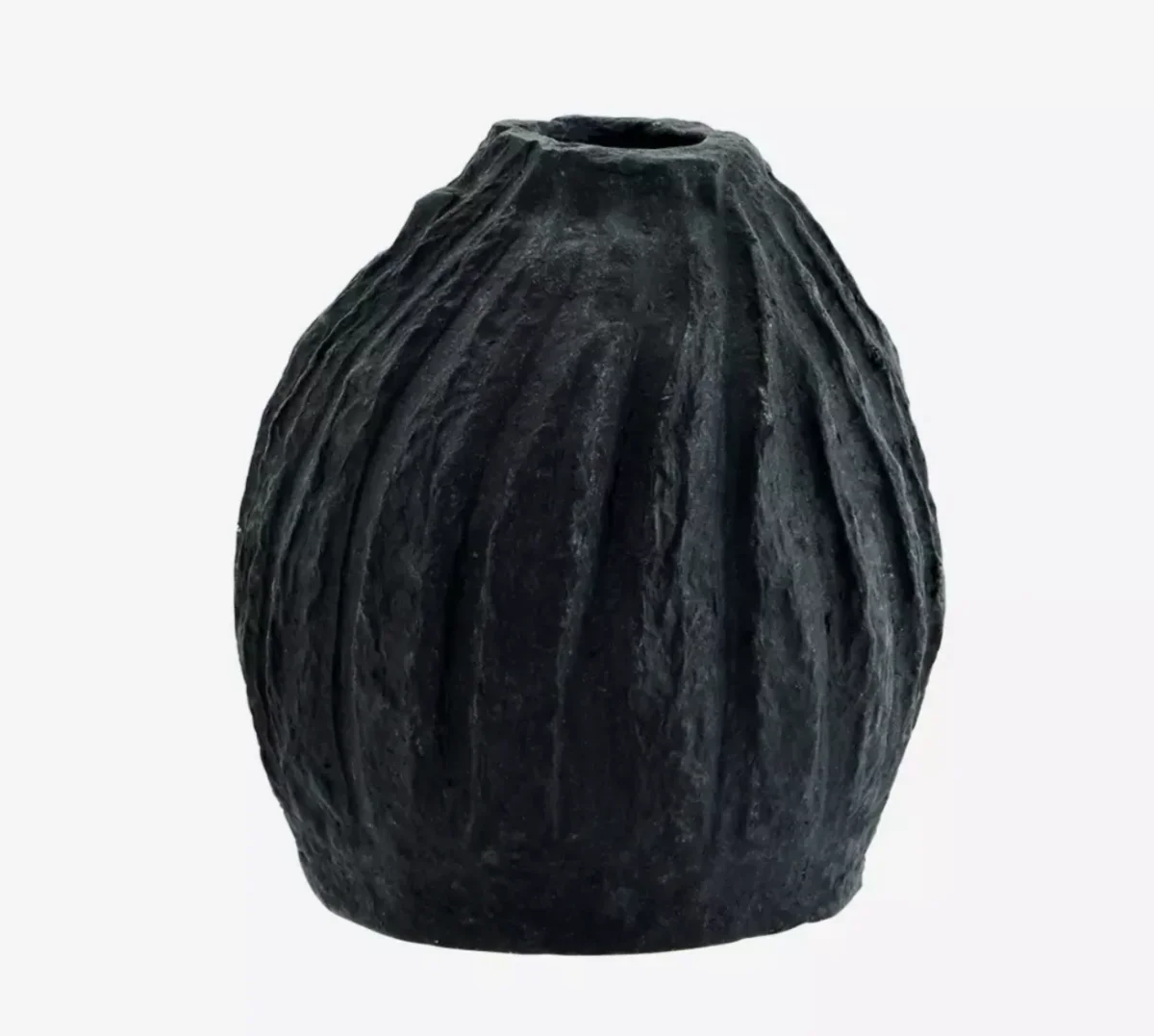 Couleur: Noir Matériau : Papier recyclé Informations complémentaires : Le vase n’est pas étanche. Les matériaux recyclés et les articles faits à la main peuvent varier Mesures: D:15×18 cm Poids : 0,800kg