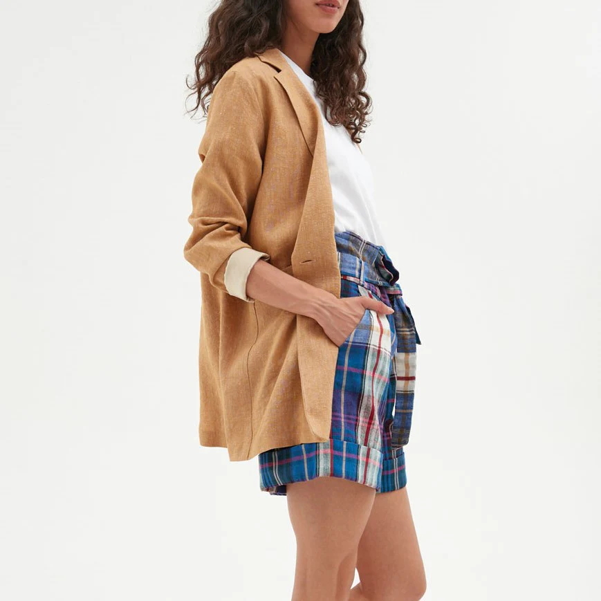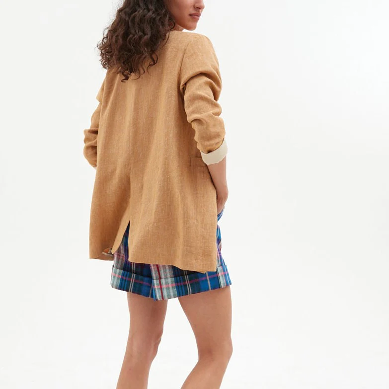 Veste tailleur à manches longues en lin, légère et fluide, idéale pour la saison estivale!