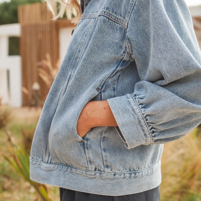 Denim bleach souple et doux – Style casual – Epaules tombantes – Poches italiennes – Fabriquée au Maroc avec des matières douces et de qualité – Certifiée Oeko-Tex: garantit l’absence de produits toxiques pour le respect de l’environnement et de la peau