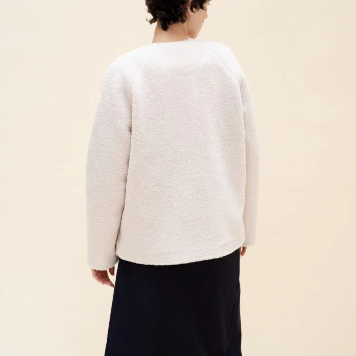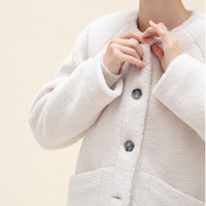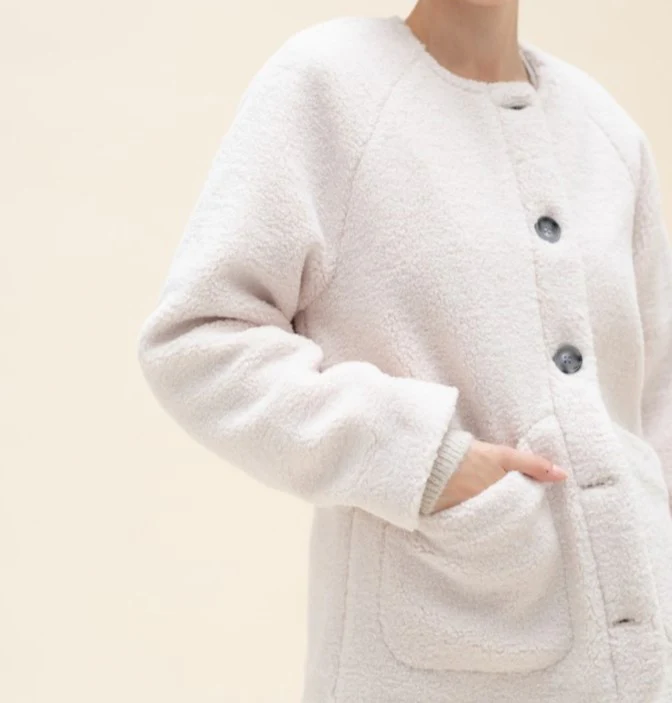 Manteau court coupe droite avec 2 poches plaquées et emmanchures raglan. Avec son gros volume et son effet fausse fourrure ce manteau est douillet, moelleux et réconfortant… Le partenaire idéal pour passer l’hiver bien au chaud