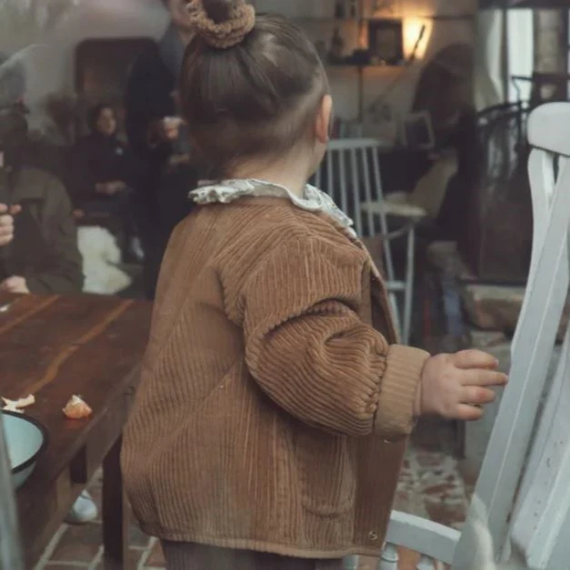 Veste mixte en velours côtelé, boutons de pression sur l’avant. Deux poches latérales.