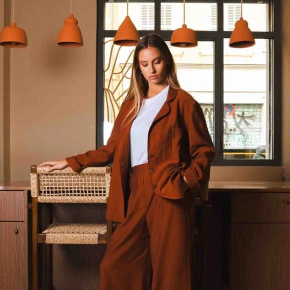 La veste PALMA s’inspire des vestes de travail américaines, une veste de travail classique à coupe standard. Légèrement oversize au niveau des épaules, elle assure décontraction et élégance. Notre modèle mesure 1m76 et porte une taille S. Coupe régulière. Fermeture à trois boutons. Deux poches plaquées en bas et une poche plaquée sur la poitrine. […]