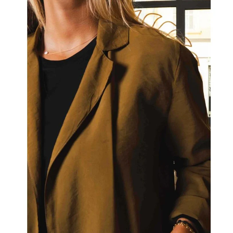 La veste PALMA kaki est fabriquée dans un tissu composé de viscose, elle possède un UPF 30 et protège à plus de 98% des rayons UV.