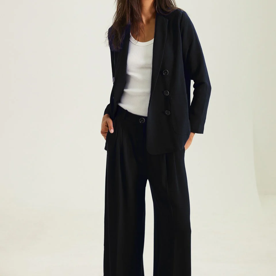 La matière : Un crêpe marocain souple et féminin. Sa facilité d’entretien et son infroissabilité font de lui l’ami du bureau et des voyages